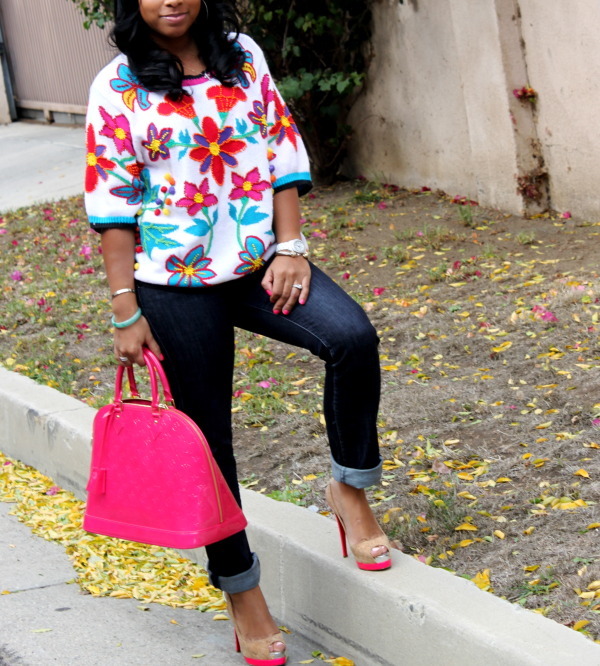 Thrifted Sweater, hudson jeans, LV Bag, CL heels.