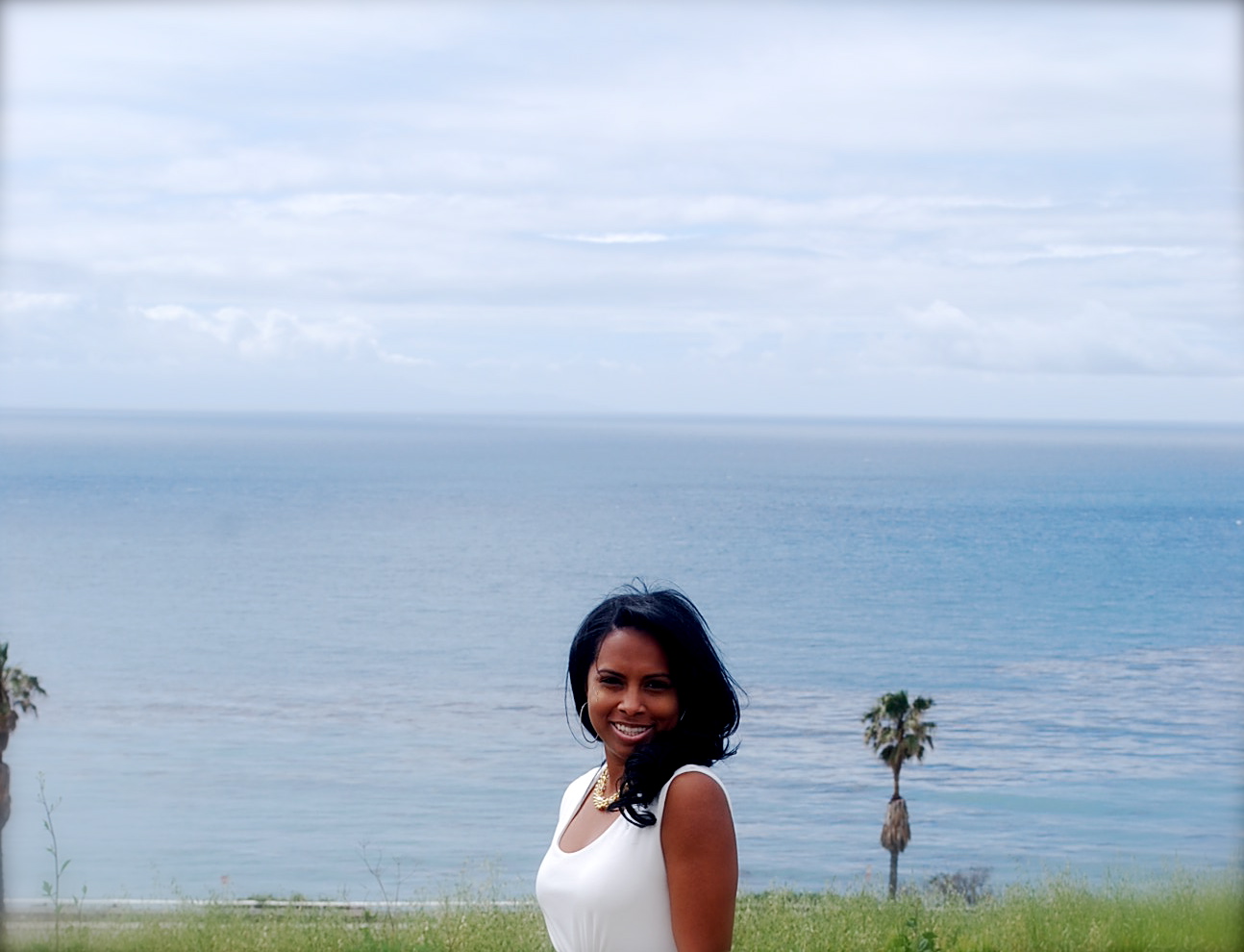 I love the composition of these pics..clean white dress against a blue ocean and green grass..perfect!!