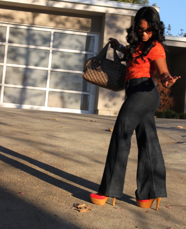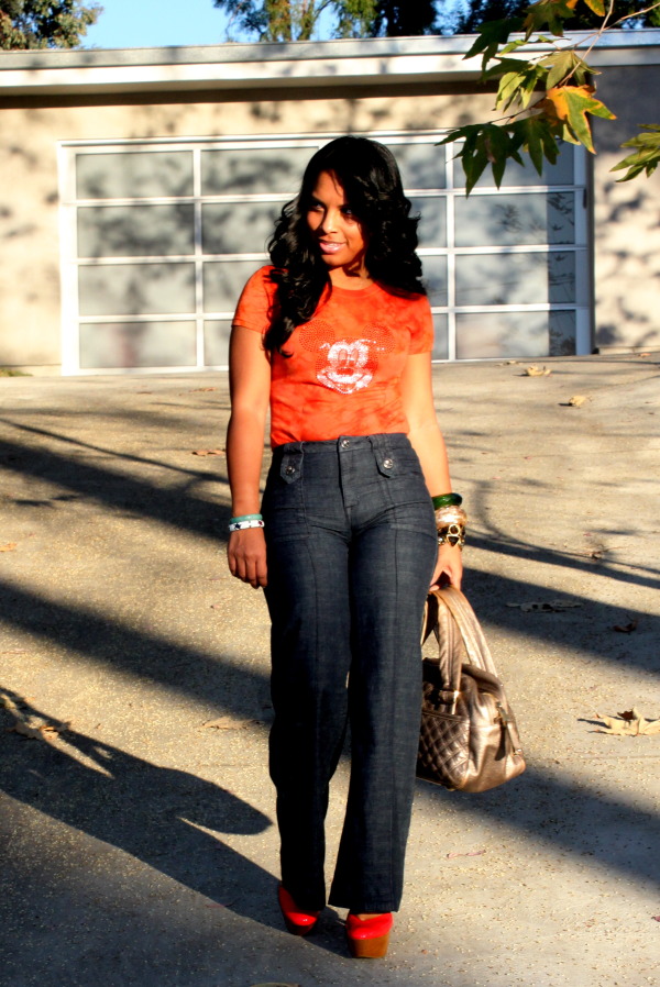 Wearing: $3 jeans T.J Maxx, Disneyland top, Gucci platforms, Marc Jacob bag.