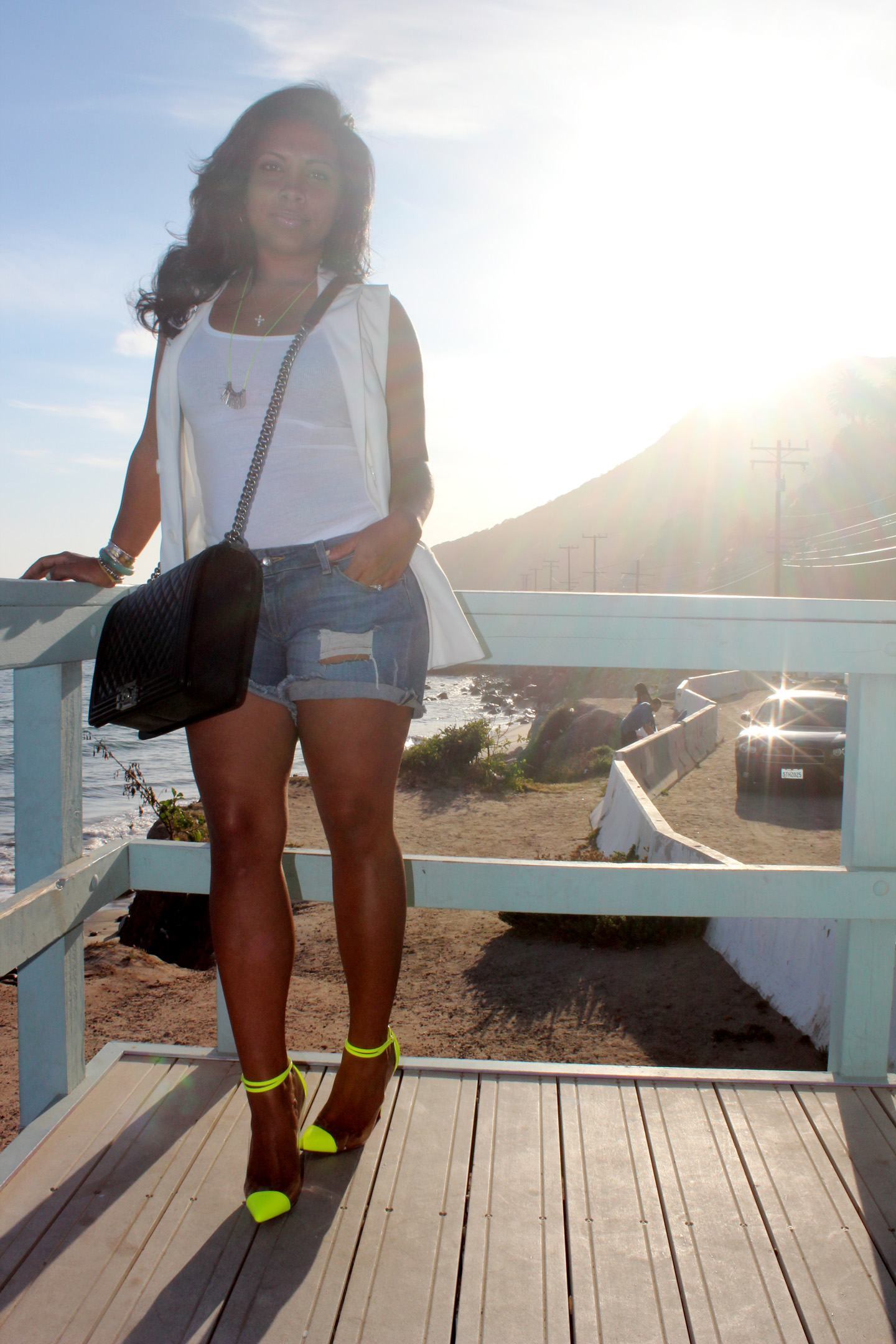 Wearing: Target White Blazer Vest, James Perse Tank (love this tank), Paige Denim Shorts, Christian Louboutin Heels, Chanel Boy Bag.