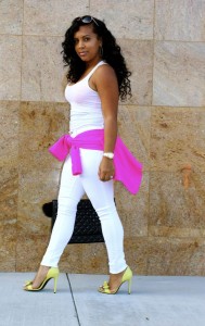 hot pink blazer white jeans 10