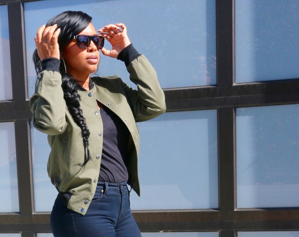 Wearing: Green Bomber Jacket from Distressed Black Jeans are J Brand, but love these as well, Jimmy Choo Pumps, James Perse T-Shirt.