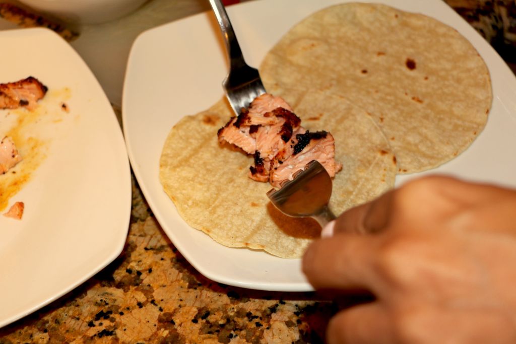 img_1132Grill Tortillaimg_1133Broil Salmon in oven, add salt, pepper and smoked paprika.img_1139 img_1141Chop lettuce and add cilantro dressingimg_1151 img_1153Flake Salmon apart with two forksimg_1154 img_1164Add lettuce and tomatoesimg_1174Bon Apetit. xoxo