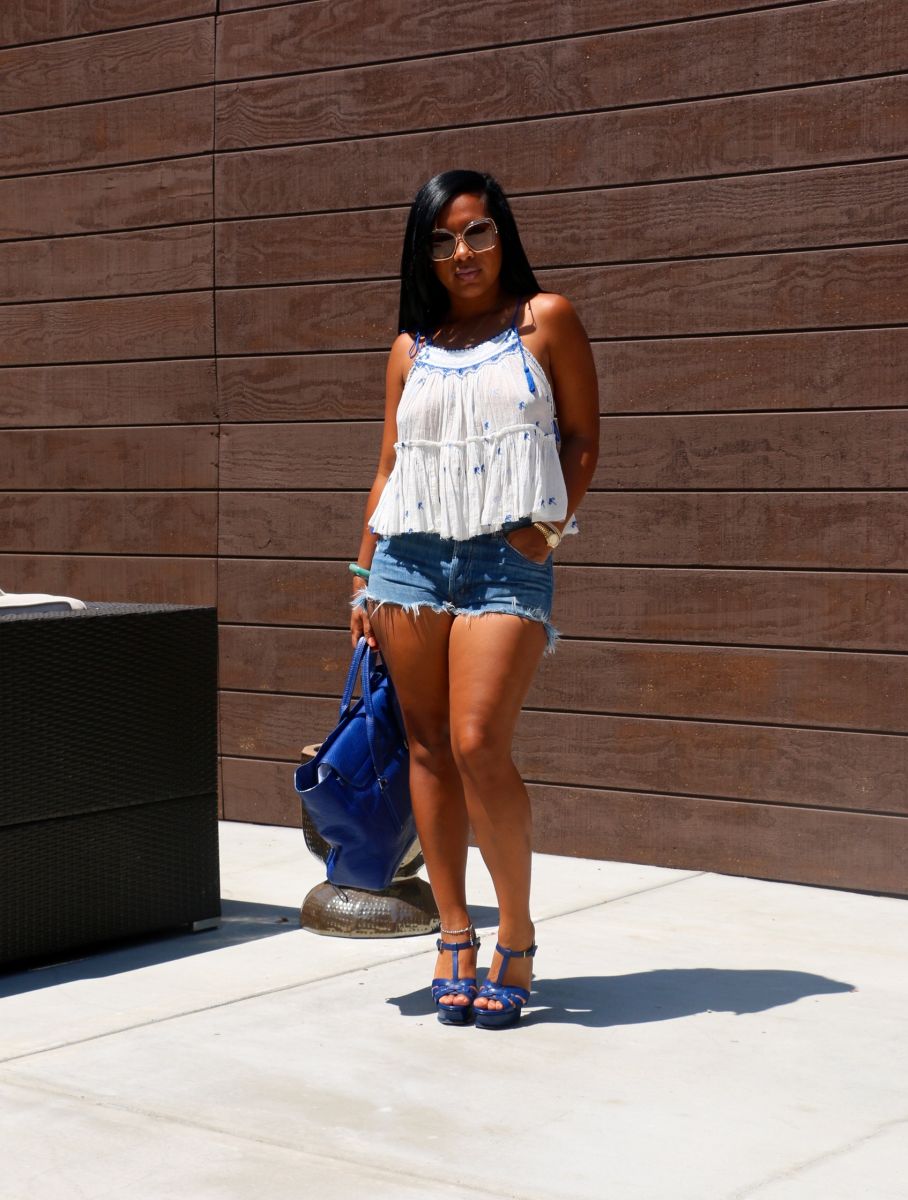Wearing: Free People Top, Hudson Cut Off Shorts, YSL Heels, Phillip Lim Bag.