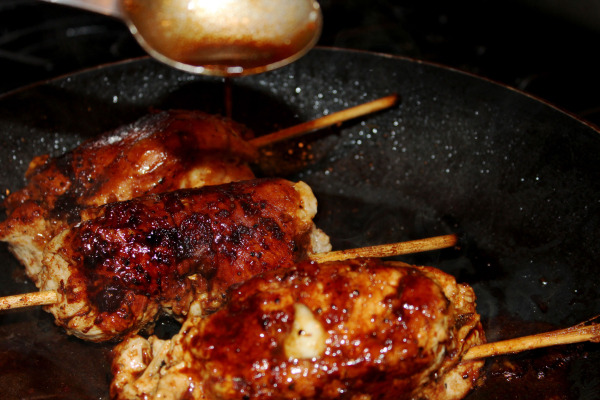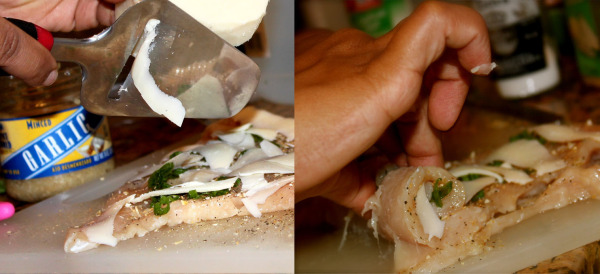 Wrap the chicken like a wrap and make sure to roll tight. Stick a toothpick or skewer stick through.