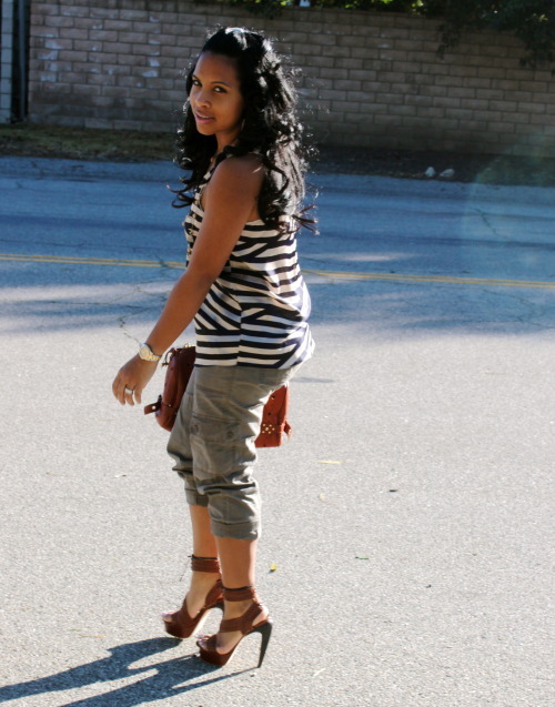I love those Cargo pants. I can't wait for the weather to break just a little so I can roll mine up and put on a pair of heels. I love that top as well.
