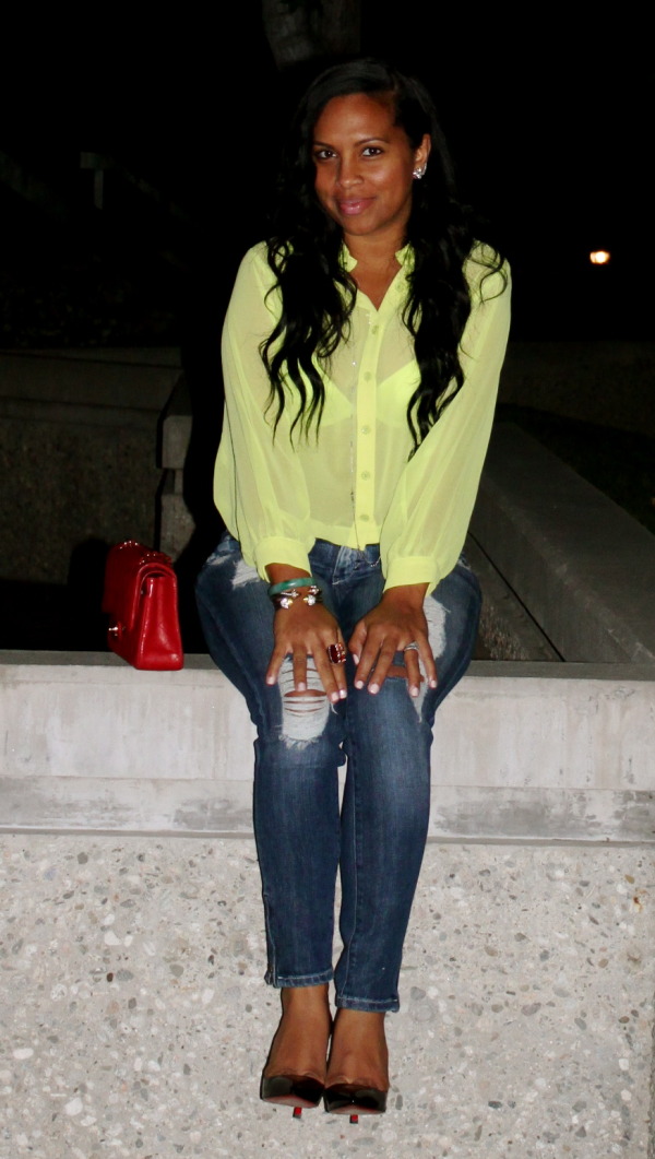 Foreign Exchange blouse, Dylan George Jeans, Chanel Bag, CL Heels