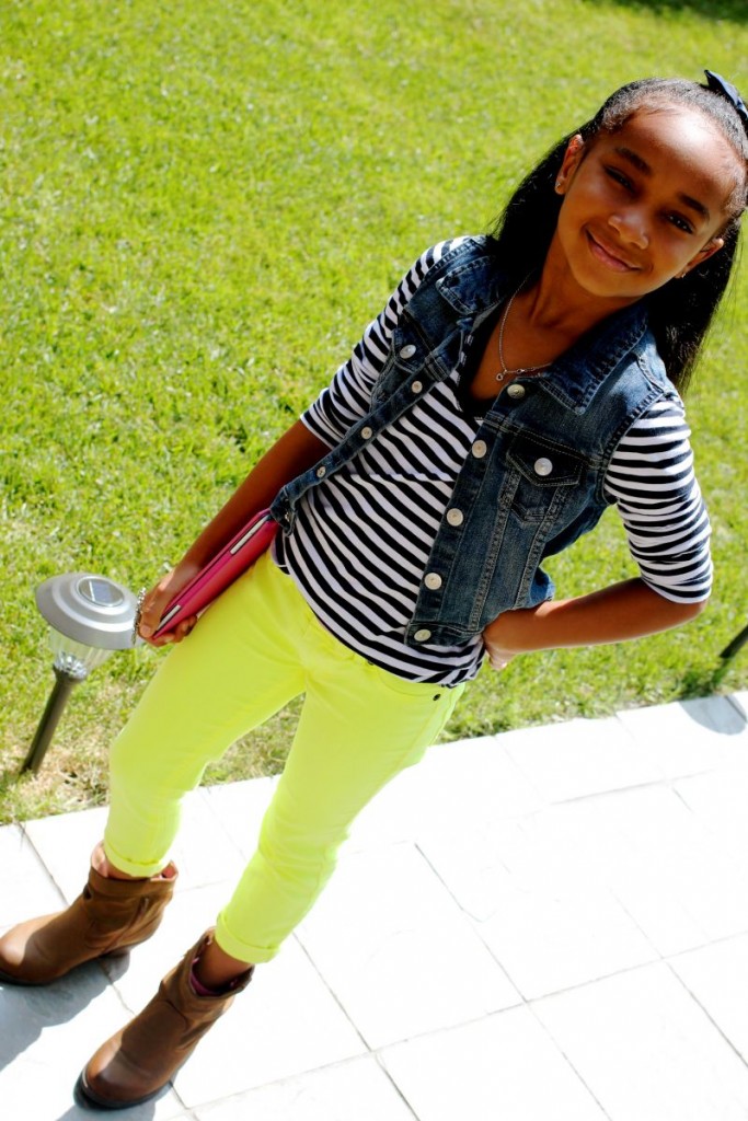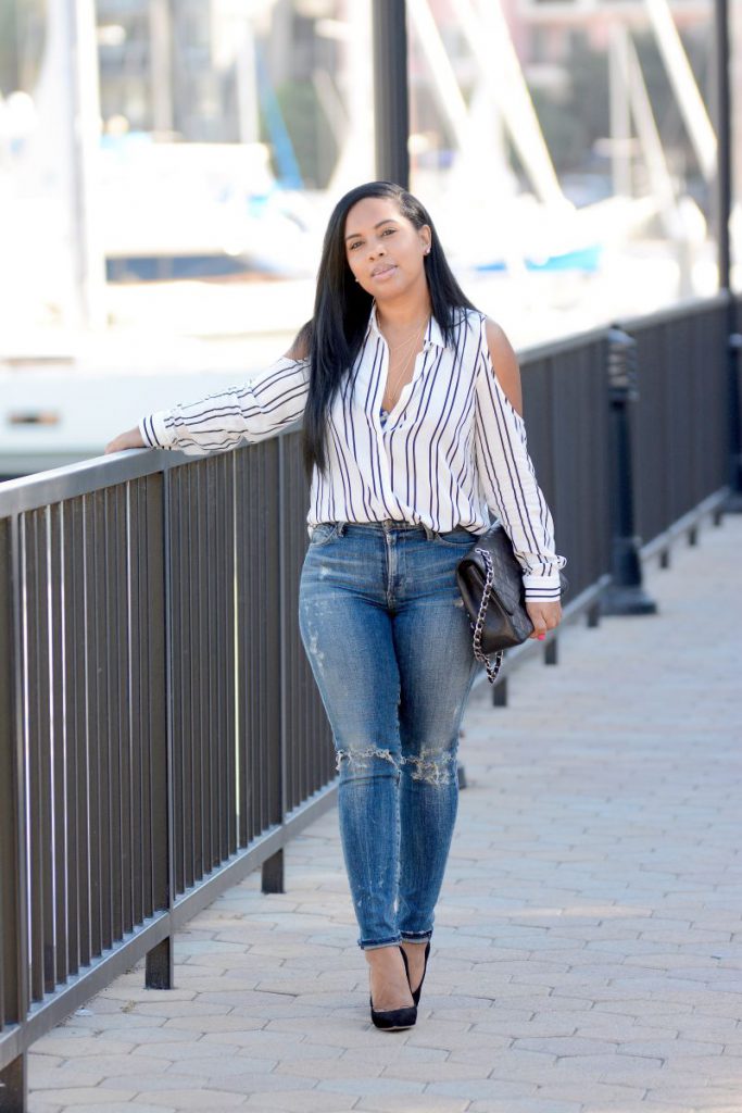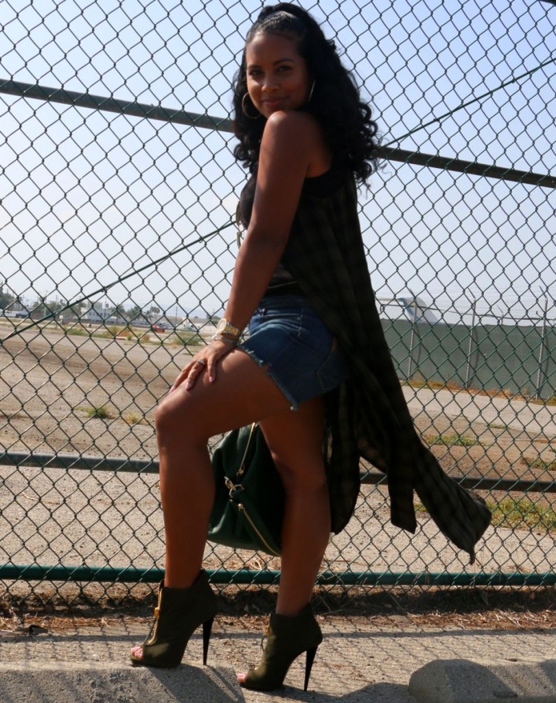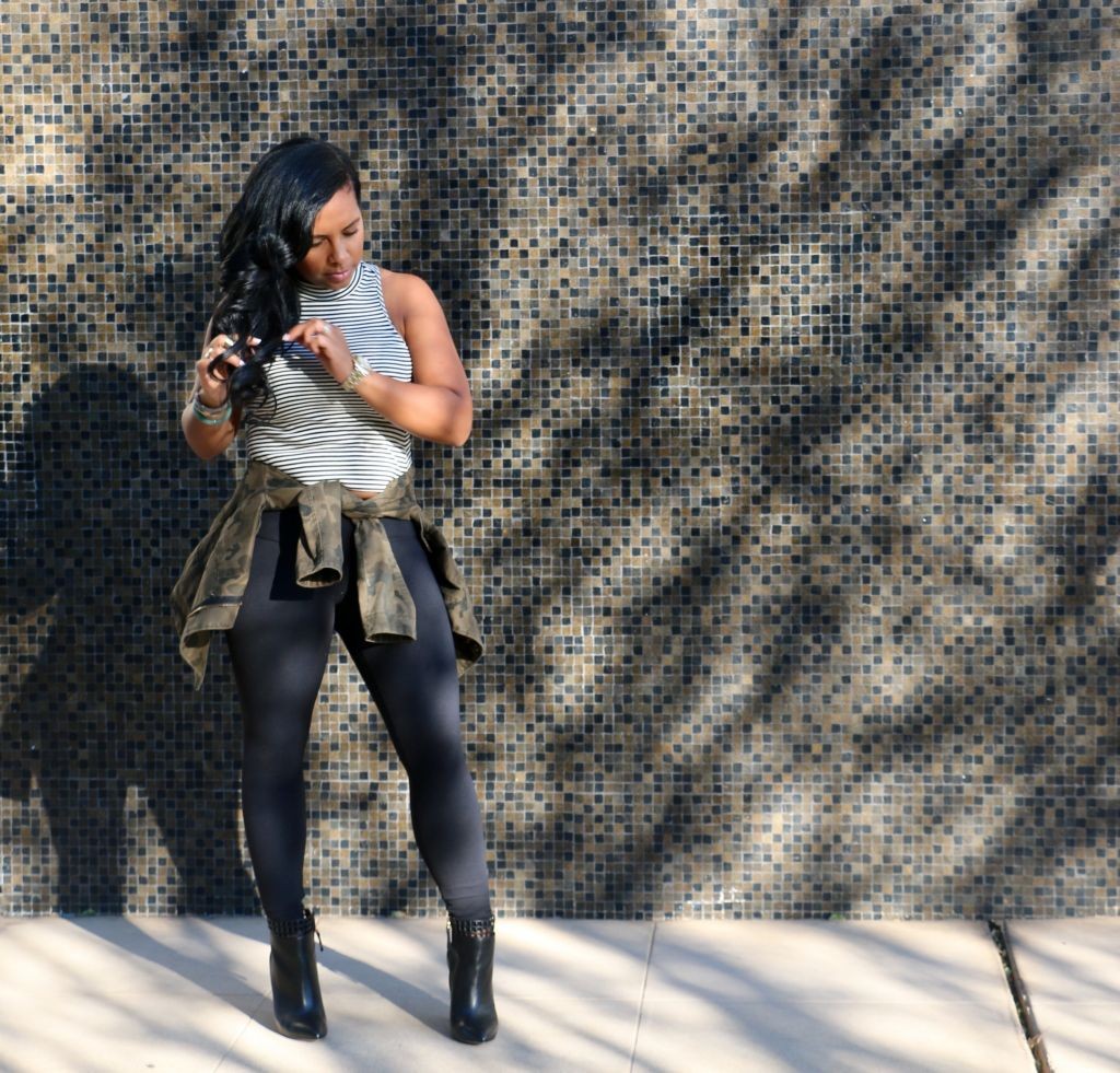 denim top with camouflage pants