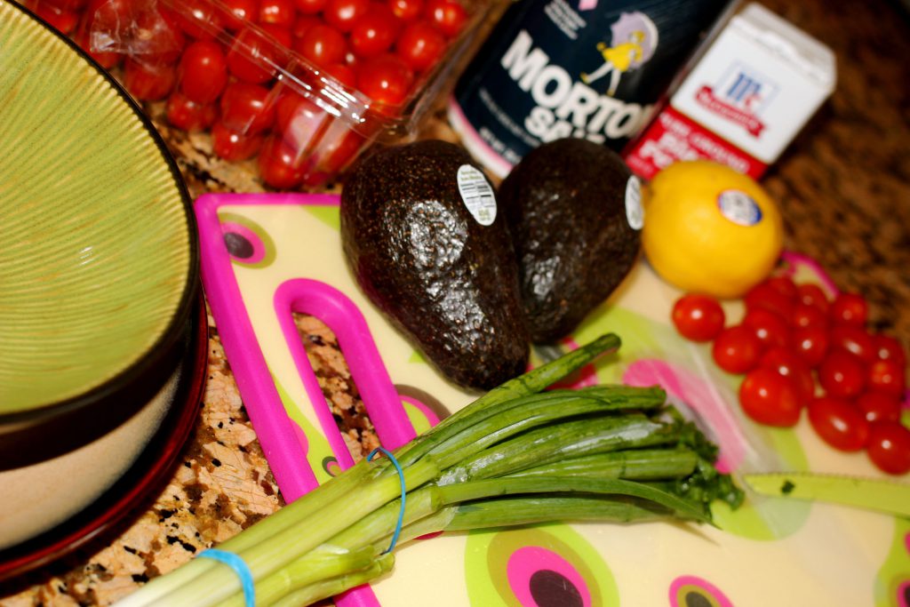 What you’ll need… chop green onions and tomatoes… dice avocados… add lemon, salt, pepper… My husband likes his dip chunky, but make yours to taste. Serve with your favorite chips. Happy Super bowl Sunday!