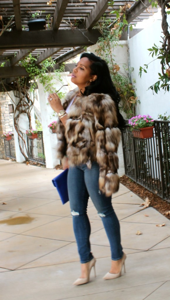 Wearing: Blue Duck Fur, J Brand Jeans, Jimmy Choo Pumps, F21 White Tank, Givenchy Clutch. [show_shopthepost_widget id=”385811″]